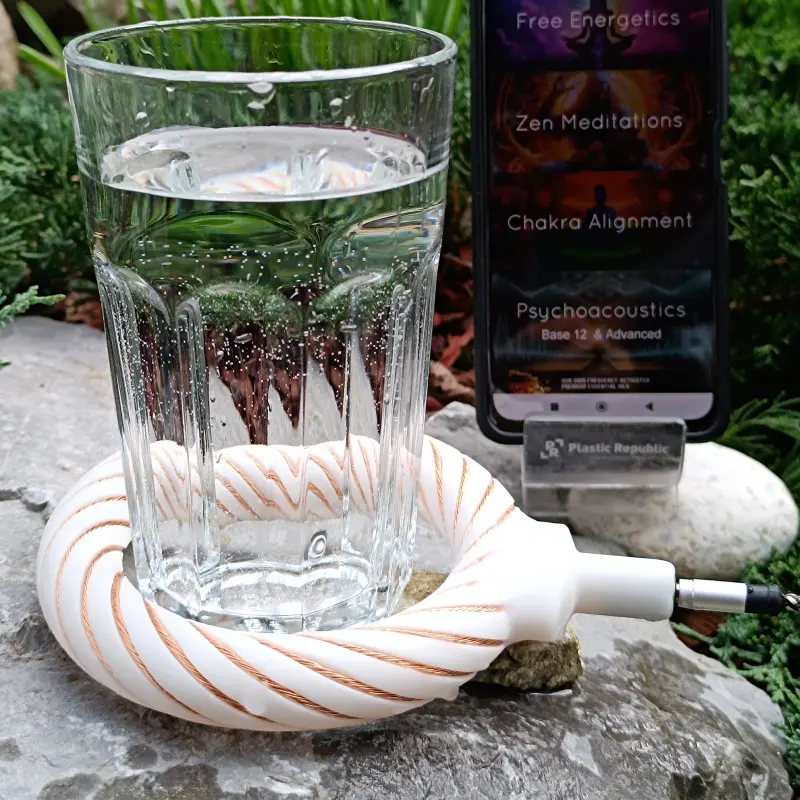 Experience the harmonizing power of the VortexSync 12 Coil, a meticulously handcrafted toroidal generator designed to interact with your body's natural energy field. This portable device, measuring approximately 12 cm x 12 cm x 2 cm (4.7 in x 4.7 in x 0.75 in), embodies the principles of Marko Rodin's vortex mathematics to create non-decaying spin and generate scalar torsion fields. It serves as a personal energy amplifier and frequency modulator, perfect for individuals interested in vibrational healing, biofield optimization, and EMF protection techniques. By connecting directly to your smartphone, this coil transforms standard audio frequencies into structured electromagnetic and scalar waves. Whether you are an energy worker seeking to enhance your practice, a meditator looking to deepen your state, or someone exploring the benefits of frequency therapy, the VortexSync 12 Coil offers a gateway to a more balanced and harmonious personal environment.